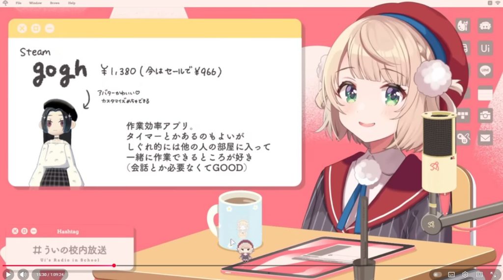 5つ目はSteamアプリ『gogh』です。アバターと3Dルームをカスタマイズして、作業や勉強に集中するための「アバター作業集中プロダクト(アプリ)」です。ポモドーロタイマー、Lo-Fiミュージック、環境音機能があり、自分のアバター(相棒)がそばで作業している様子を見ながら、世界中のユーザーと同じ空間で集中できるのが特徴です。
